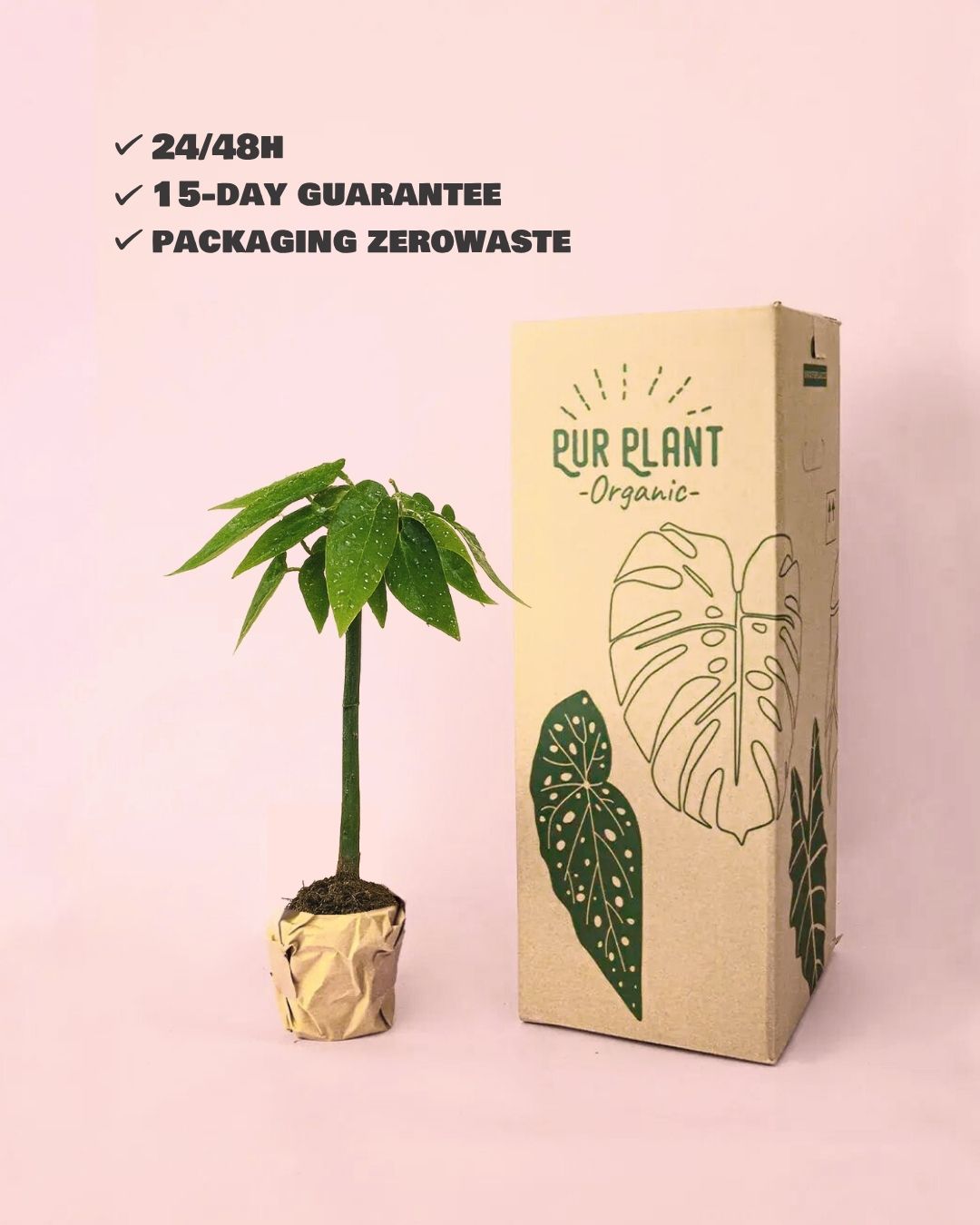 Cuidamos cada parte del proceso para que recibas tus plantas sanas y felices ¡garantizado! Envolvemos cada una con papeles reciclados y compostables en un packaging 100% libre de plásticos y emisiones ♻️