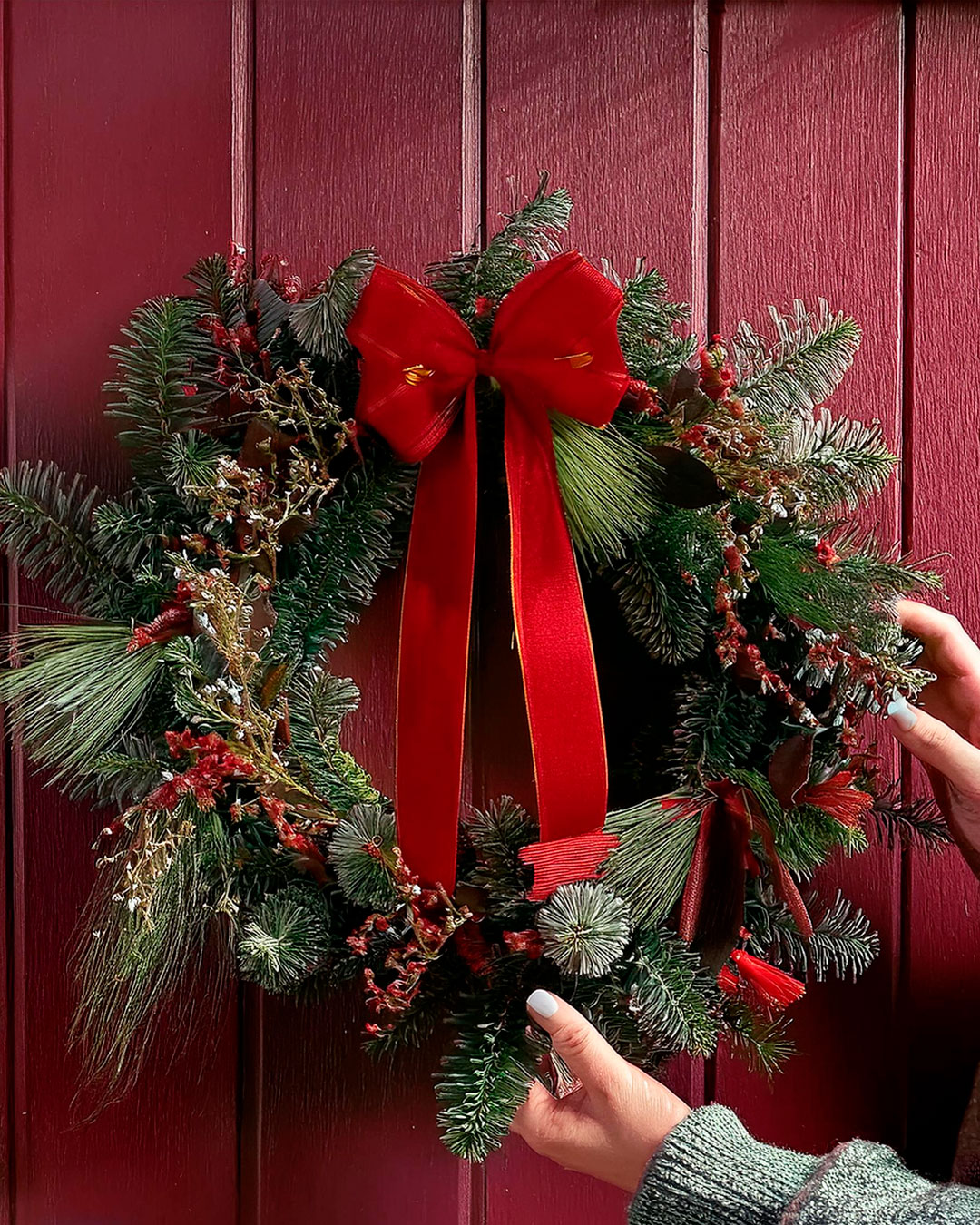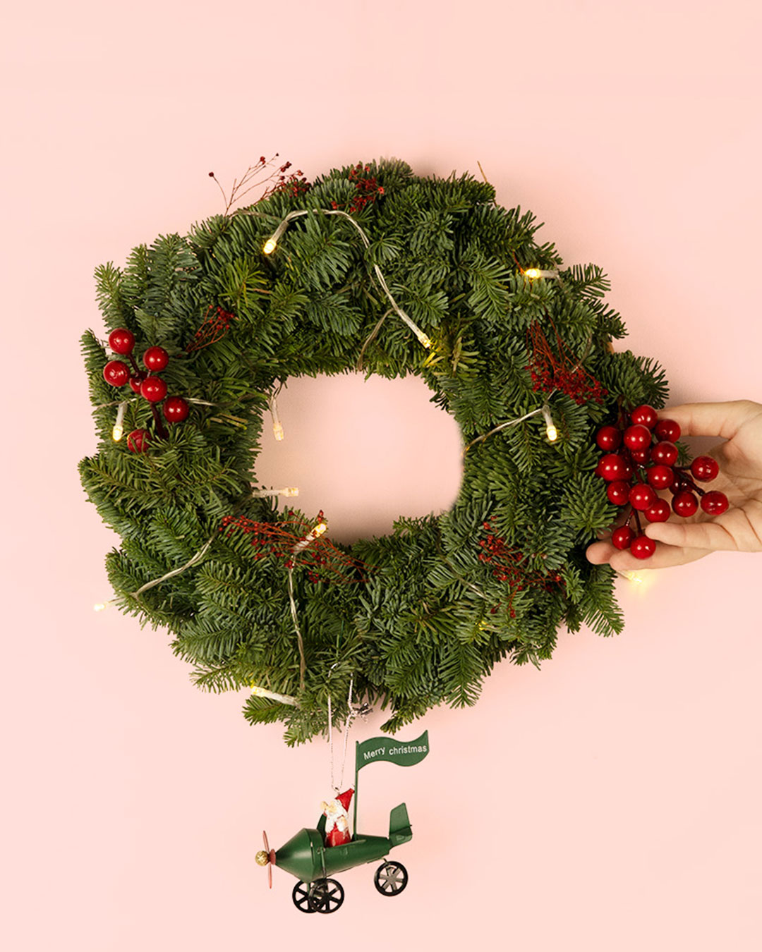 – Clásico y navideño: Un lazo rojo bien grande, unas bayas rojas, y listo, ¡la Navidad en todo su esplendor!
