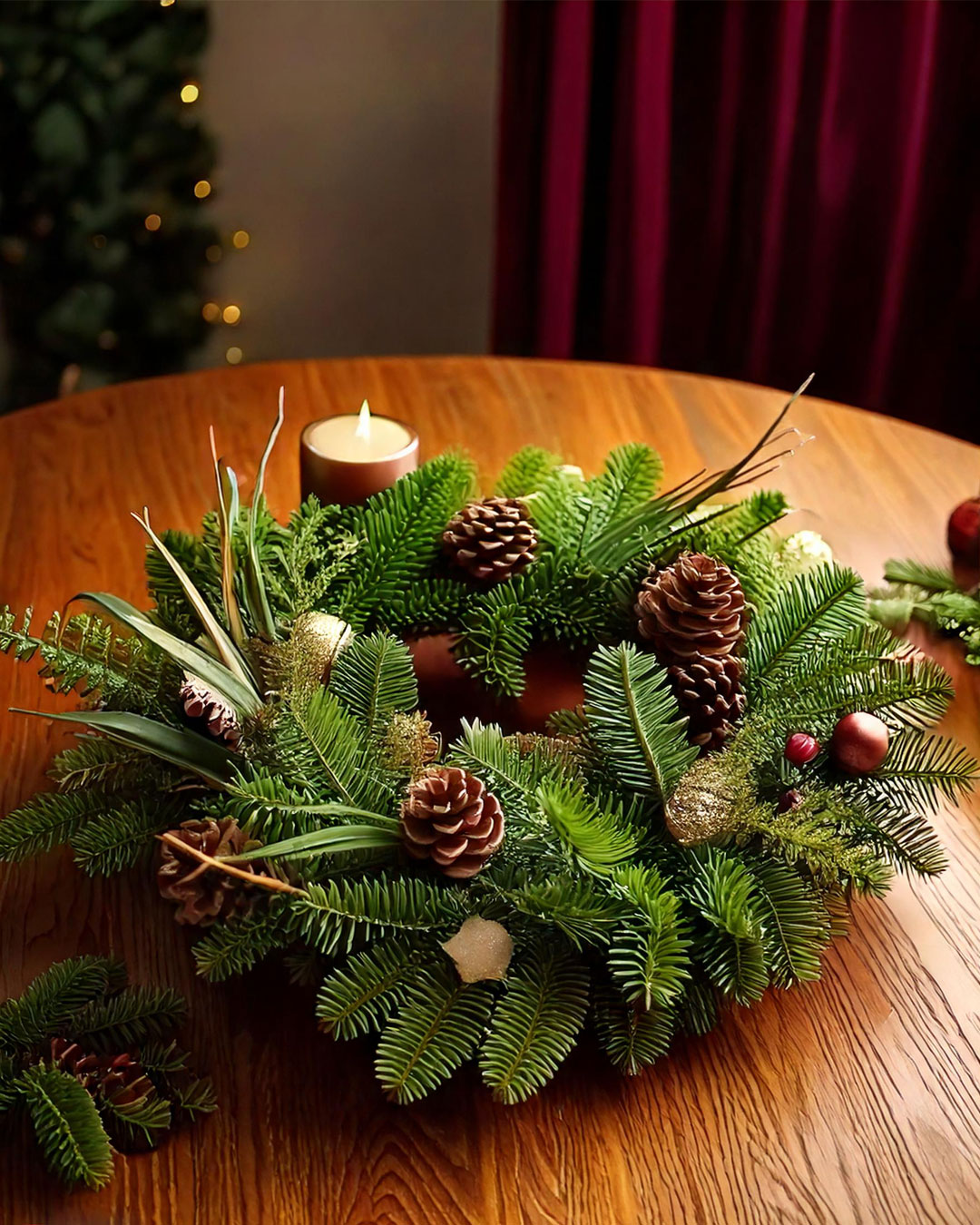¿Buscas un toque de magia navideña que haga que tu casa se sienta más acogedora que nunca? Nuestra corona de Navidad natural es justo lo que necesitas. Está hecha con ramas frescas de pino o abeto (¡la naturaleza en su máxima expresión!) y tiene ese verde tan bonito que parece sacado de un bosque invernal. Es perfecta para colgar en la puerta, decorar una pared o incluso usarla como centro de mesa para tus cenas navideñas.