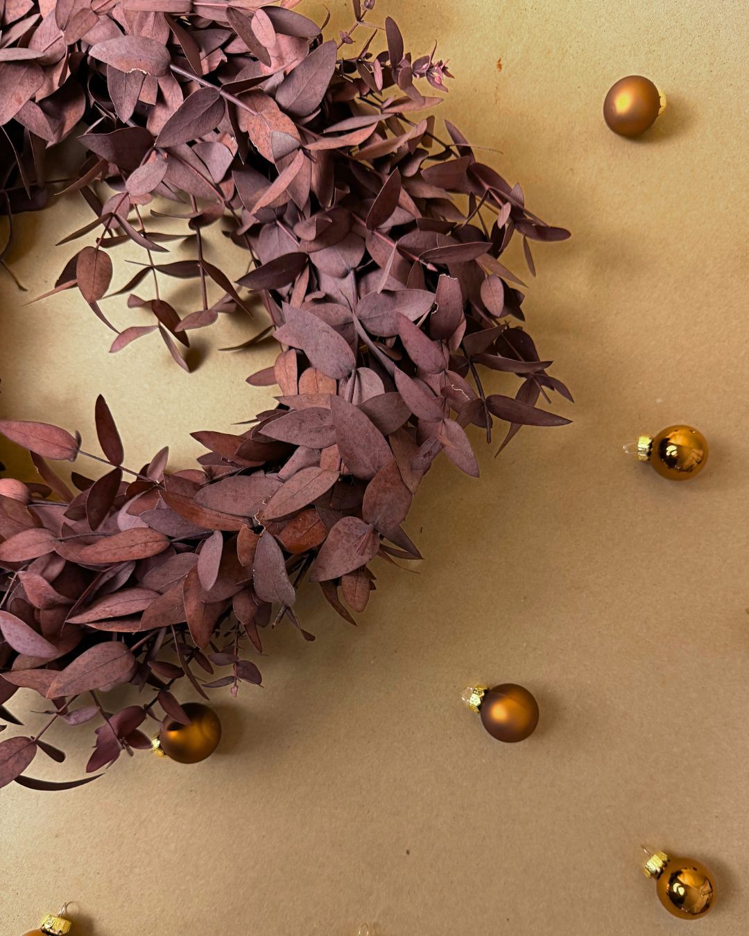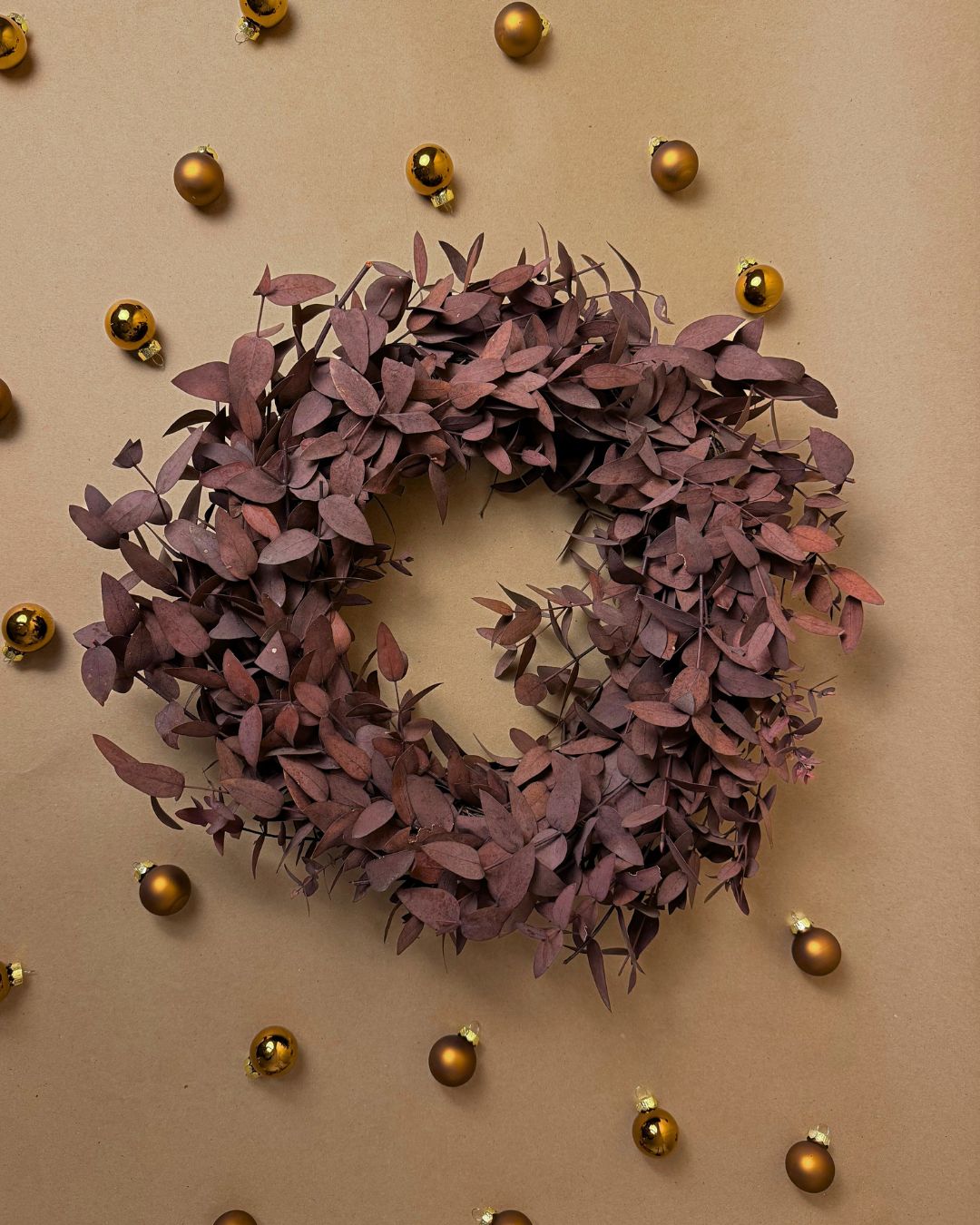 Esta espectacular corona roja es una oda al otoño y sus colores. Realizada con eucalipto, no solo quedará genial como centro de mesa o colgada, sino que además aportará un increíble aroma a tus espacios.