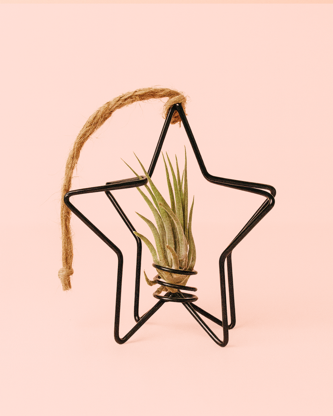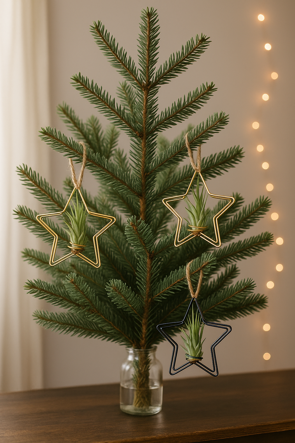 La Estrella Árbol de Navidad con Tillandsia es una pieza decorativa que combina el espíritu navideño con la frescura de la naturaleza. Esta estrella incorpora una Tillandsia (planta aérea) que no requiere tierra, solo luz y un poco de humedad. Ideal para colgar en tu árbol, decorar la mesa o regalar en fiestas.