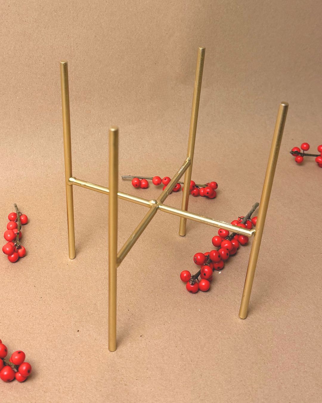 La maceta cerámica artesanal aporta calidez y textura, mientras que el soporte metálico dorado eleva la planta con delicadeza, creando una composición visual preciosa y muy equilibrada. Juntos forman un conjunto elegante, navideño y listo para colocarse en cualquier rincón.