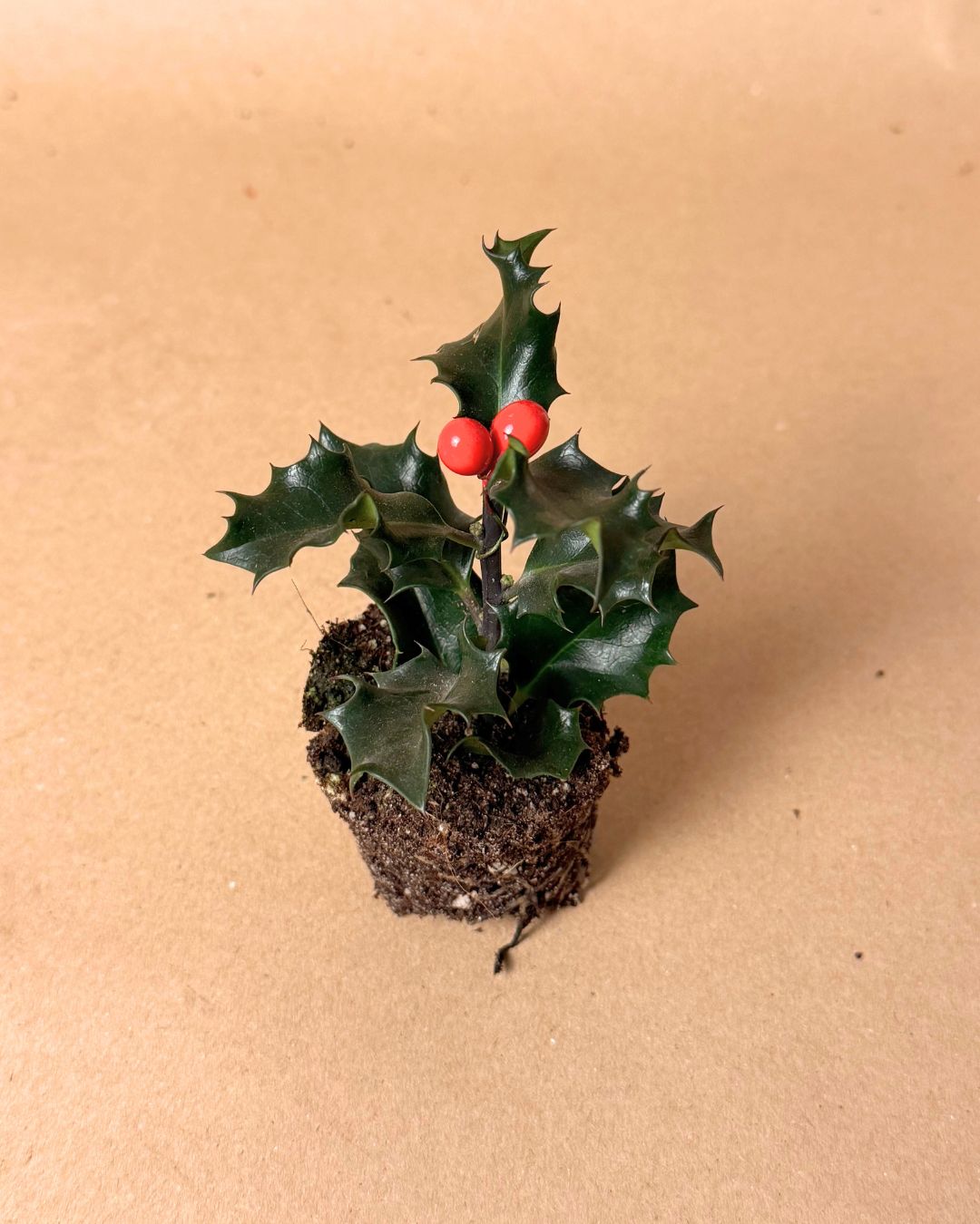 El Gift Set Houx Pot incluye un Acebo Mini, Happy Pot Blanca y postal navideña. Planta de cuidado moderado con un toque festivo y encantador.