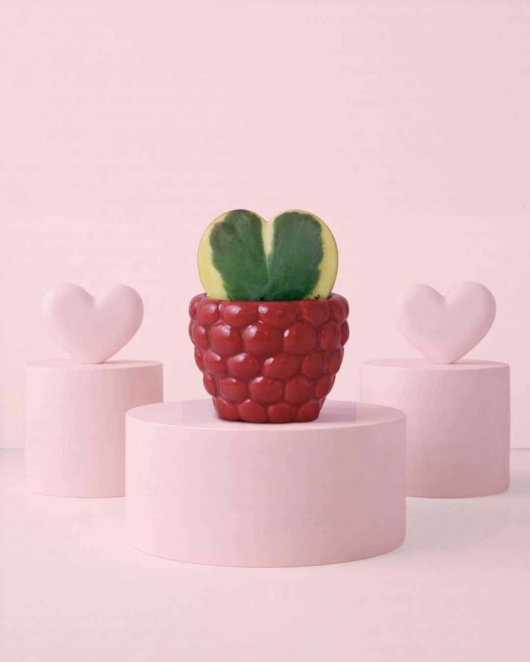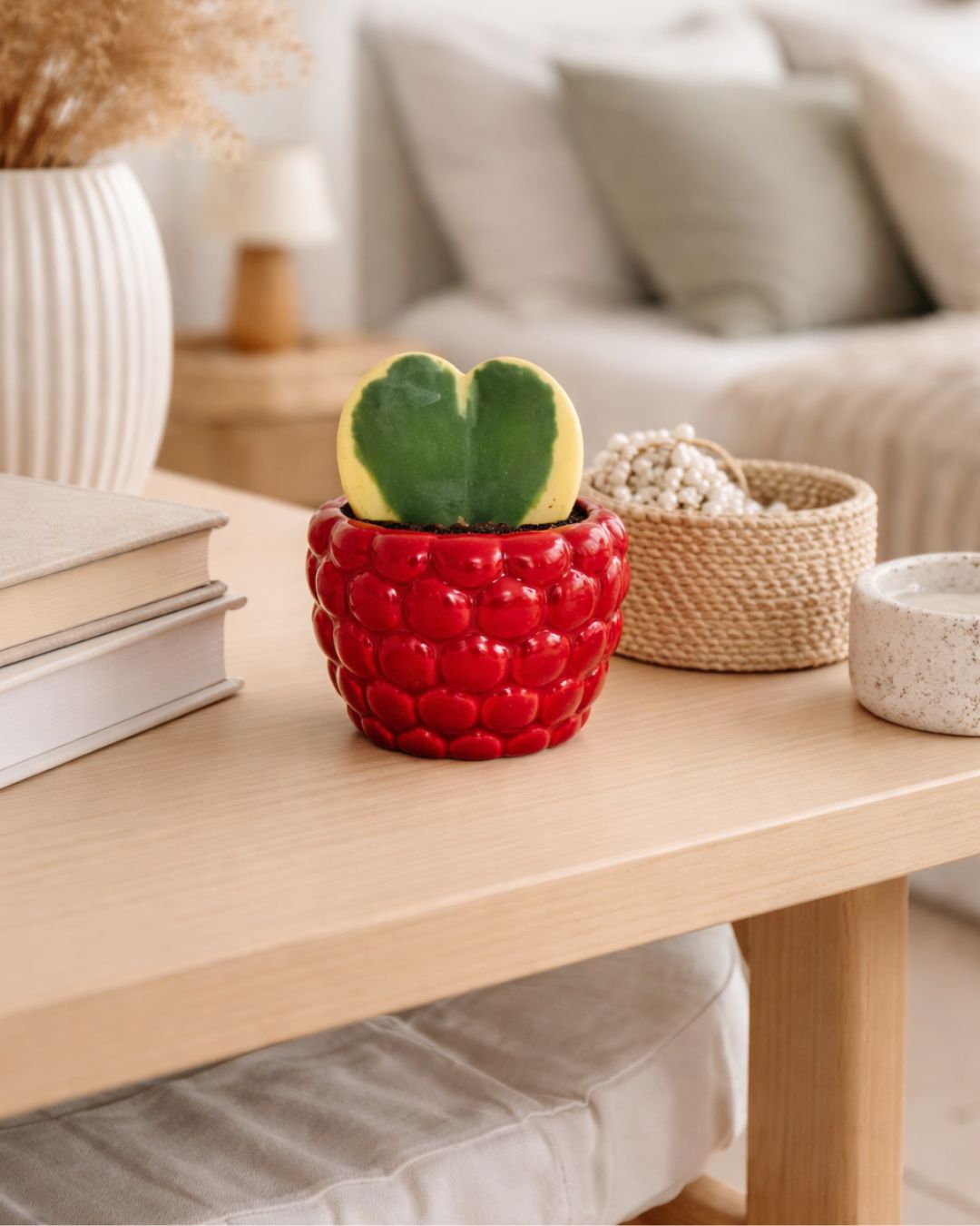 La Hoya Kerrii Variegada, conocida como planta corazón, es una de las plantas de interior naturales más especiales por la forma de sus hojas carnosas y sus delicados bordes claros. Cada hoja presenta una variegación única que aporta luz y contraste, convirtiéndola en una pieza muy decorativa a pesar de su tamaño compacto.