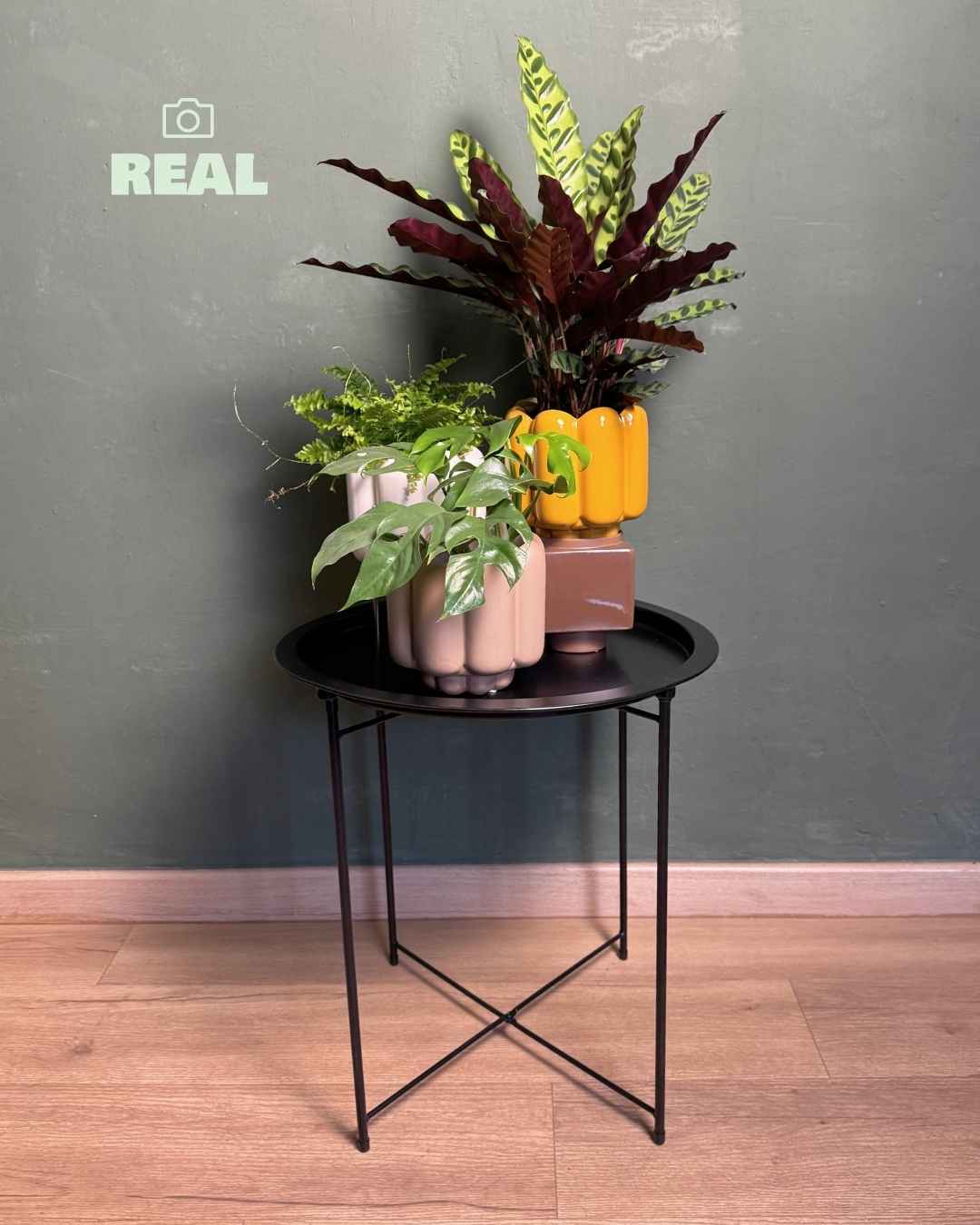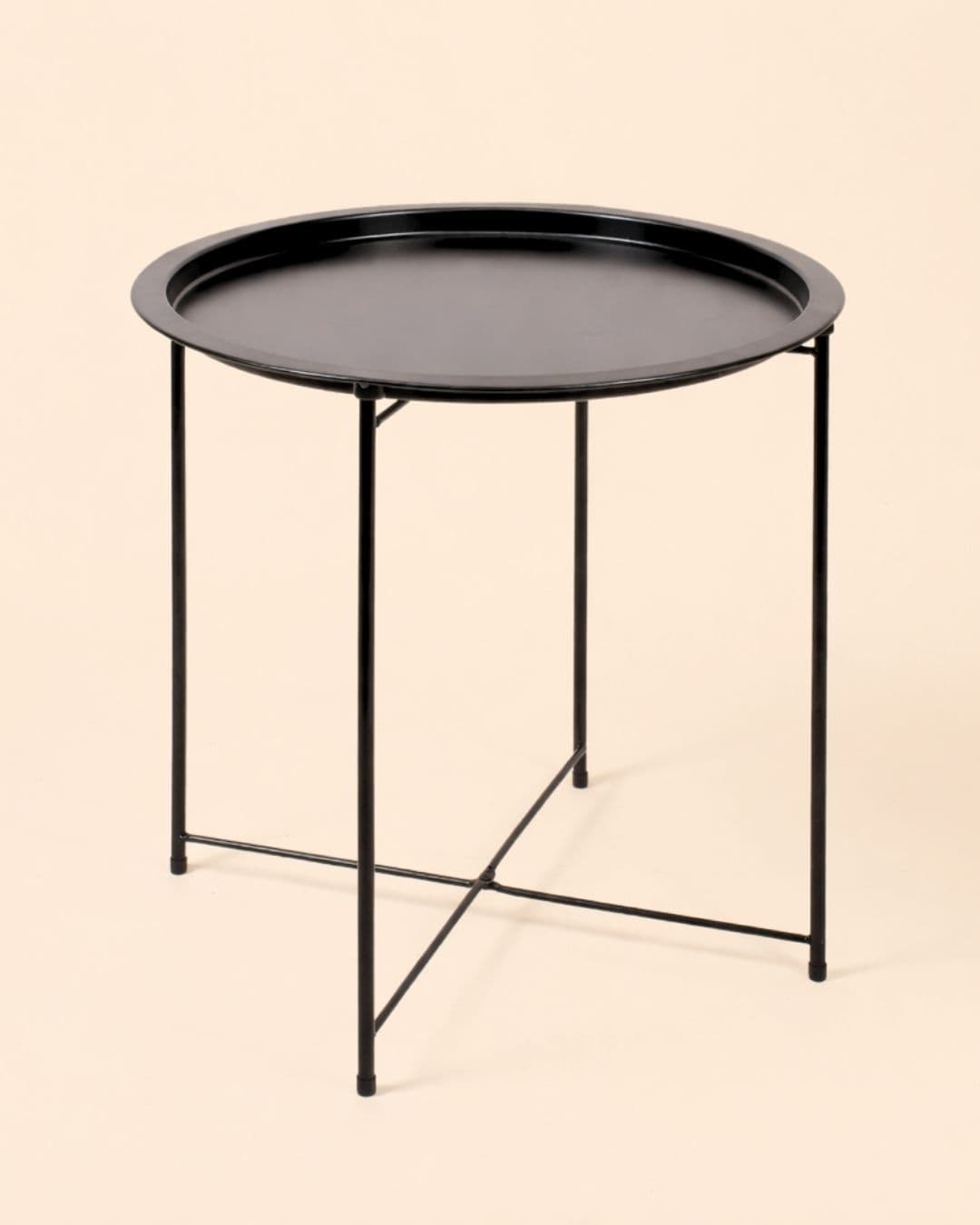 Mesa auxiliar metálica negra para plantas, diseño minimalista y elevada. Ideal para interior. 50 cm de alto x 47 cm de diámetro.