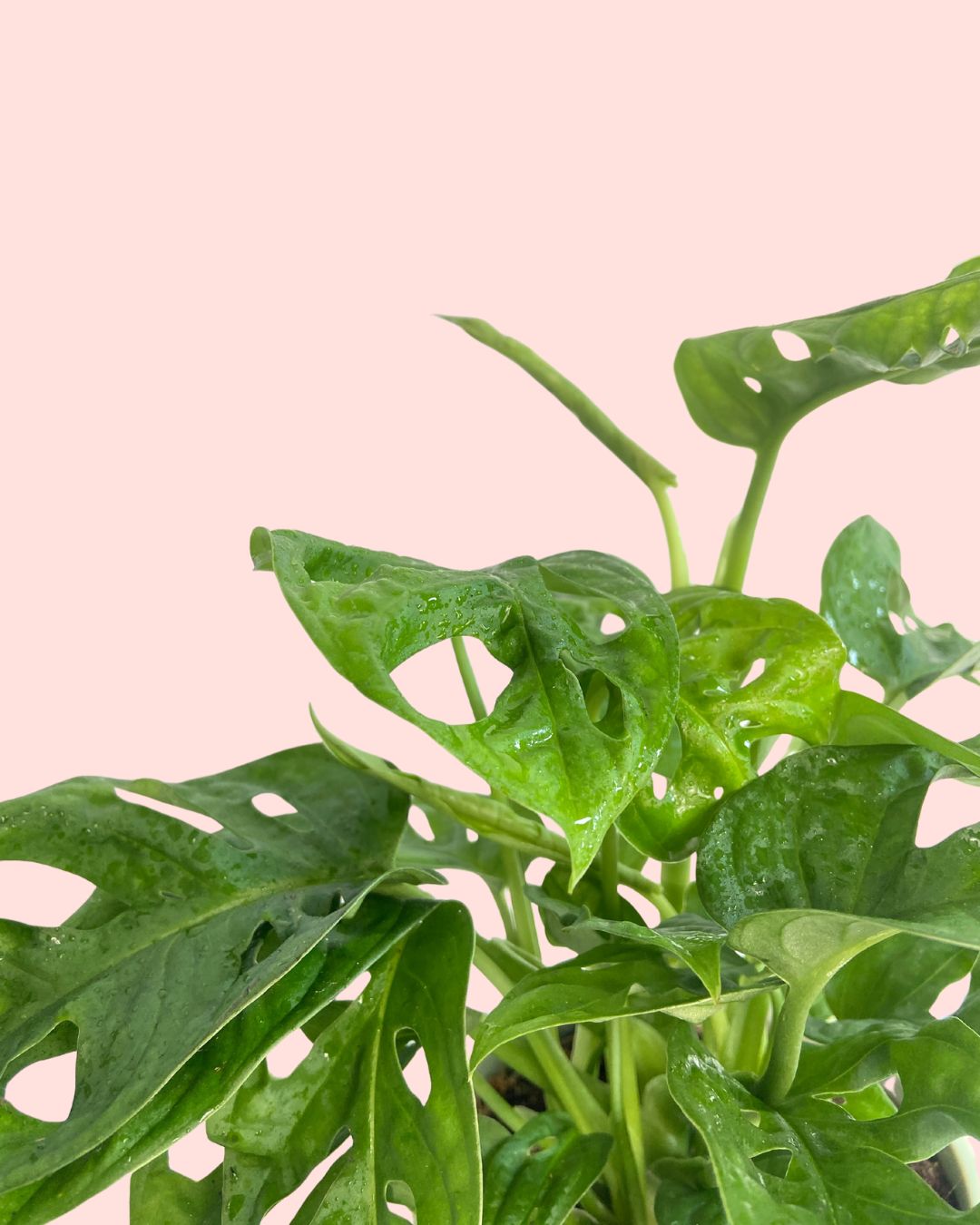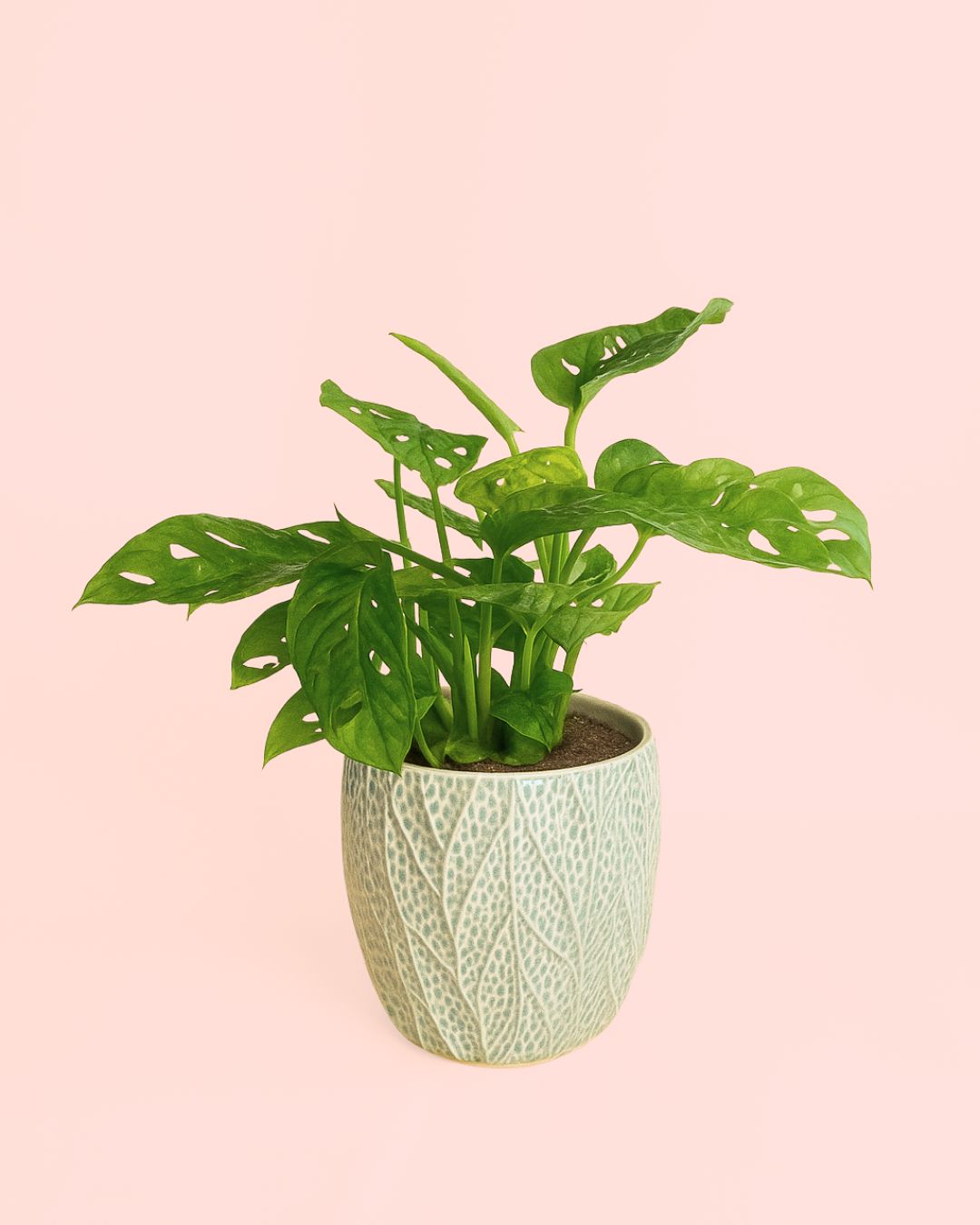 La Monstera Adansonii, también conocida como “Monstera Monkey Mask”, es una planta natural de interior muy apreciada por sus hojas únicas, llenas de perforaciones naturales que parecen dibujos de la propia naturaleza. Su textura verde intensa y su crecimiento trepador la convierten en una opción perfecta para quienes buscan un toque tropical y sofisticado.