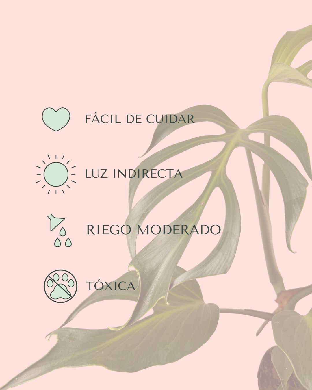 Riego: Moderado; dejar secar ligeramente la capa superior del sustrato entre riegos.