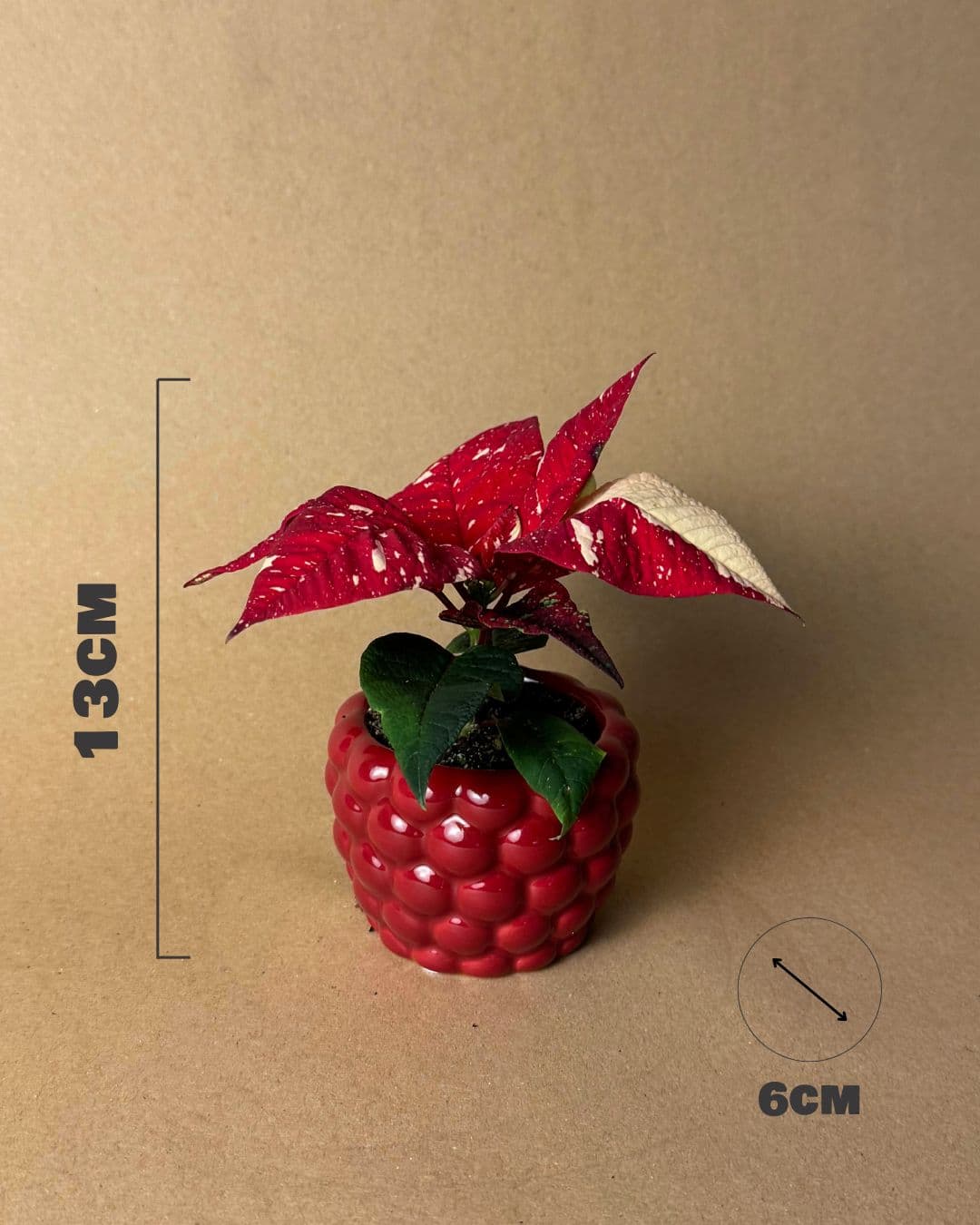 La Poinsettia Variegada Mini es la versión más coqueta y especial de la clásica flor de Pascua. Sus hojas jaspeadas en tonos crema y rojo la convierten en un pequeño estallido festivo que encaja en cualquier rincón. Perfecta para regalar, decorar y dar un toque navideño único sin ocupar espacio.