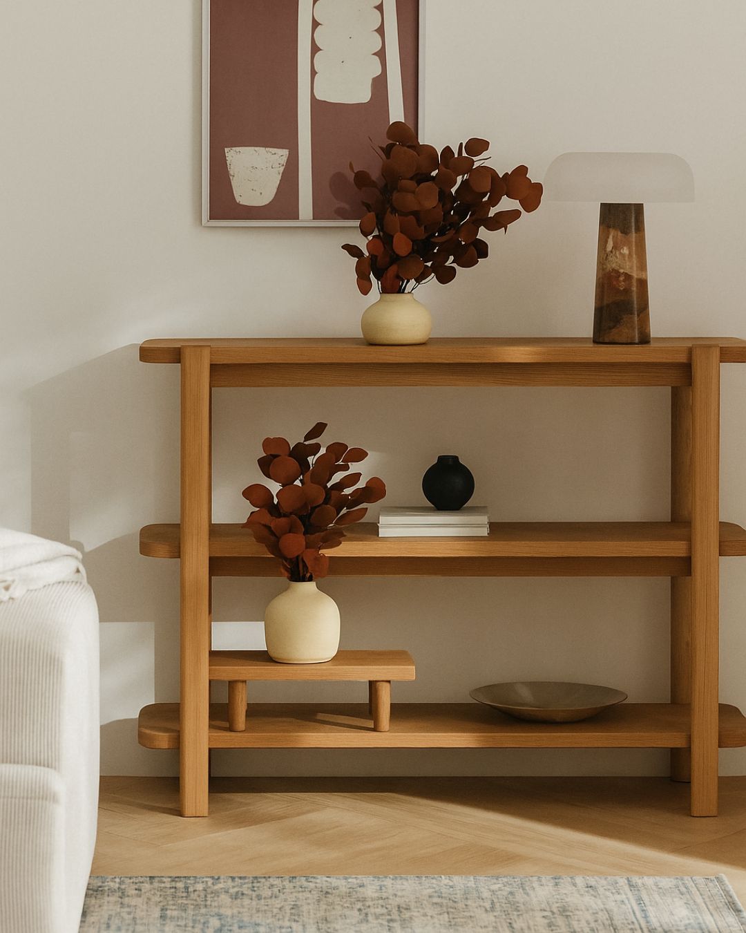 Su color burgundy aporta calidez y carácter, convirtiéndose en el foco de cualquier composición natural o minimalista.
