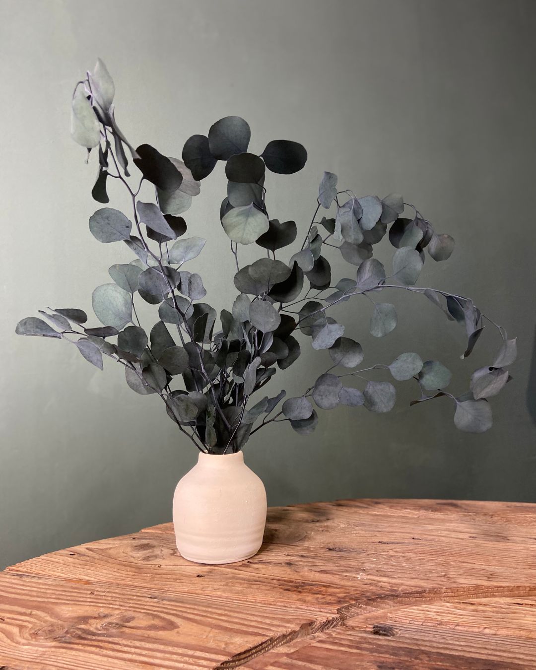 Nuestro Ramo de Eucalipto Populus Preservado Verde con Jarrón es una pieza atemporal perfecta para decorar tus espacios. Está hecho con eucalipto natural tratado para mantenerse bonito durante meses (¡o incluso años!) sin necesidad de agua ni mantenimiento.