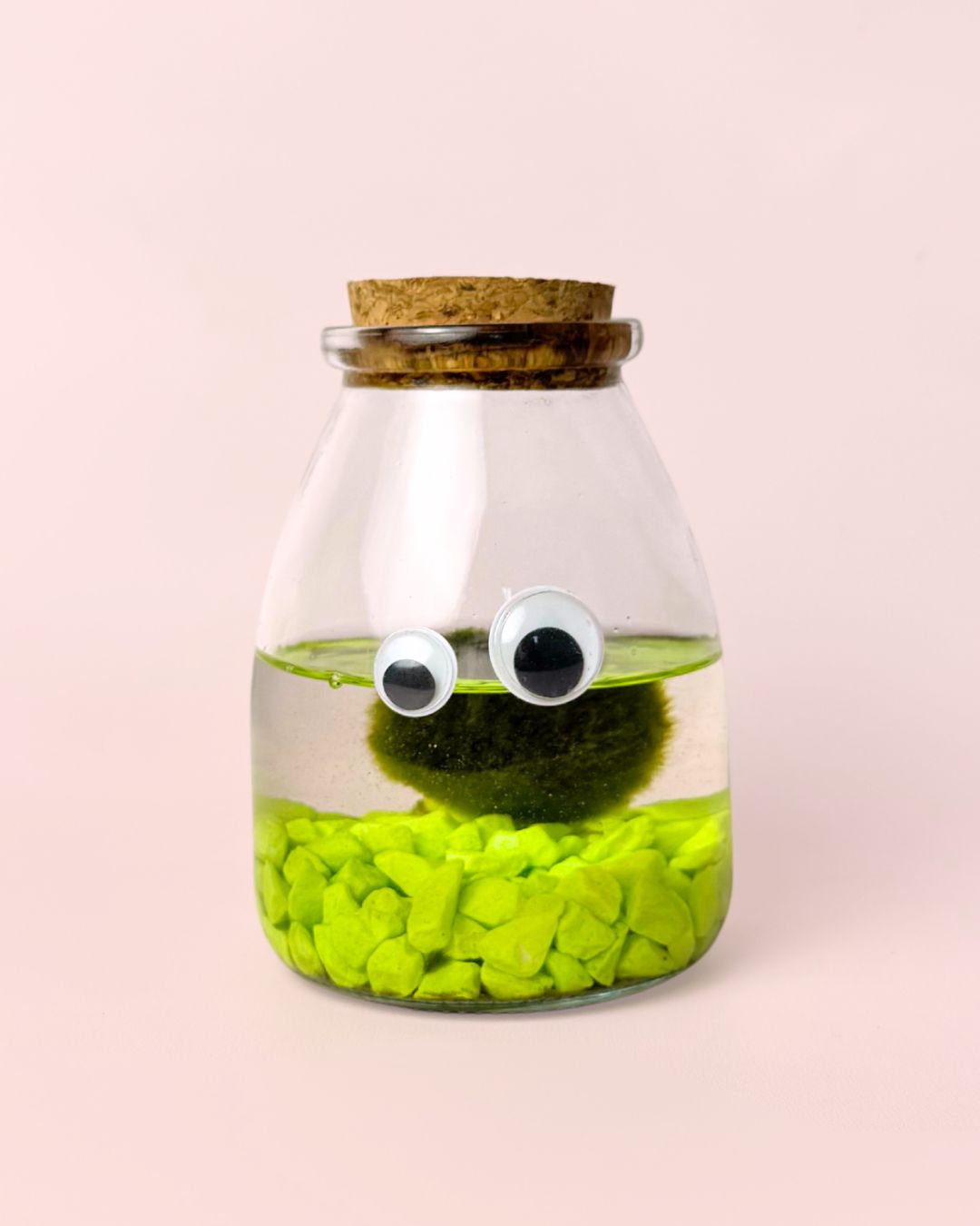 Terrario Marimo con 1 bola de marimo natural y diseño monstruo, original y muy fácil de cuidar.